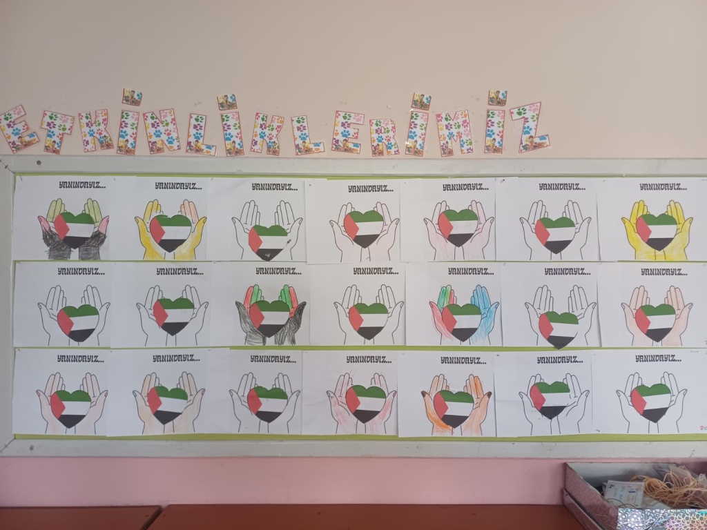 Bakanlığımızca Uygulanan Filsitin Farkındalık Eğitimleri kapsamında okulumuz öğrencileri; Filistin'de yaşanan insanlık dramı ile ilgili etkinlikler yaptı. Etkinlikler kapsamında yaşanan insanlık dramının farkına varma ve daha fazla kişilere ulaştırma adına resimler yapıp, panoları süslediler.